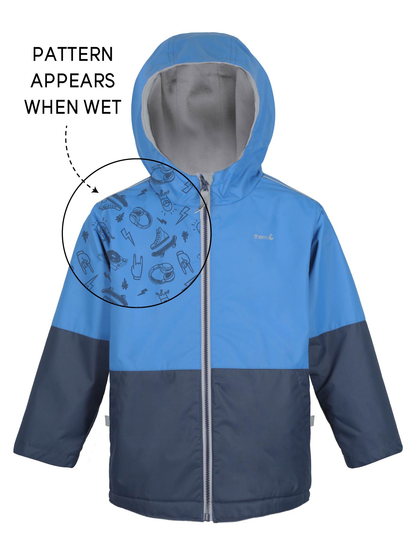 Kids cannot get enough of these SplashMagic storm jackets. Be prepared for them wanting to show anyone (and we mean ANYONE) the secret pattern appearing when their jacket gets wet!As well as having a cool SplashMagic pattern, these raincoats feature a 5,000mm waterproof outer shell, and are 100% windproof. Lightweight and easy wearing, with a soft and cosy microfleece lining that kids love to wear. We have added stretchy handwarmer cuffs with thumbholes to keep little hands warm, and fleece lined zipper pockets. Perfect for daily adventures and outdoor pursuits alike! When they do get wet and dirty, these awesome magic rain jackets are quick drying, and easy to throw in the washing machine and dryer (in fact the heat from the dryer preserves the water repellent teflon coating)