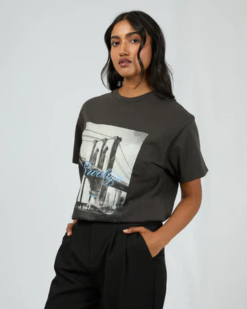 Bring a bold, urban edge to your wardrobe with the Brooklyn Oversized Tee featuring a striking photo graphic of the famous Brooklyn Bridge. Designed for ultimate comfort and laid-back style, this tee is made from soft, breathable cotton fabrication with an oversized fit that offers a relaxed, street-ready vibe. Pair with some AAE denim bottoms and some sneakers for the perfect everyday look.