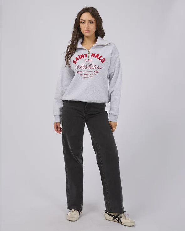 Elevate your casual wardrobe with the Saint Malo Quarter Zip by All About Eve. This snow marle fleece sweater combines luxurious comfort with sophisticated style, featuring eye-catching contrast embroidery and feminine text graphics. The convenient quarter zip closure offers versatility in styling and temperature control, while the standard fit ensures a flattering silhouette. Perfect for everything from coffee dates to weekend getaways, this plush layer will quickly become your go-to piece for effortless elegance in cooler weather.