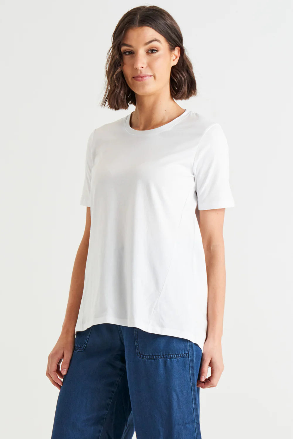 Introducing the Hamilton Tee Scoop Neck - your new wardrobe favorite for a touch of laid-back chic! With its flattering trapeze shape and short sleeves, this tee adds a fun and relaxed vibe to any outfit. Perfect for casual days out or lounging at home, it's the ultimate blend of comfort and style. Elevate your look with the Hamilton Tee Scoop Neck and enjoy effortless fashion all day long!