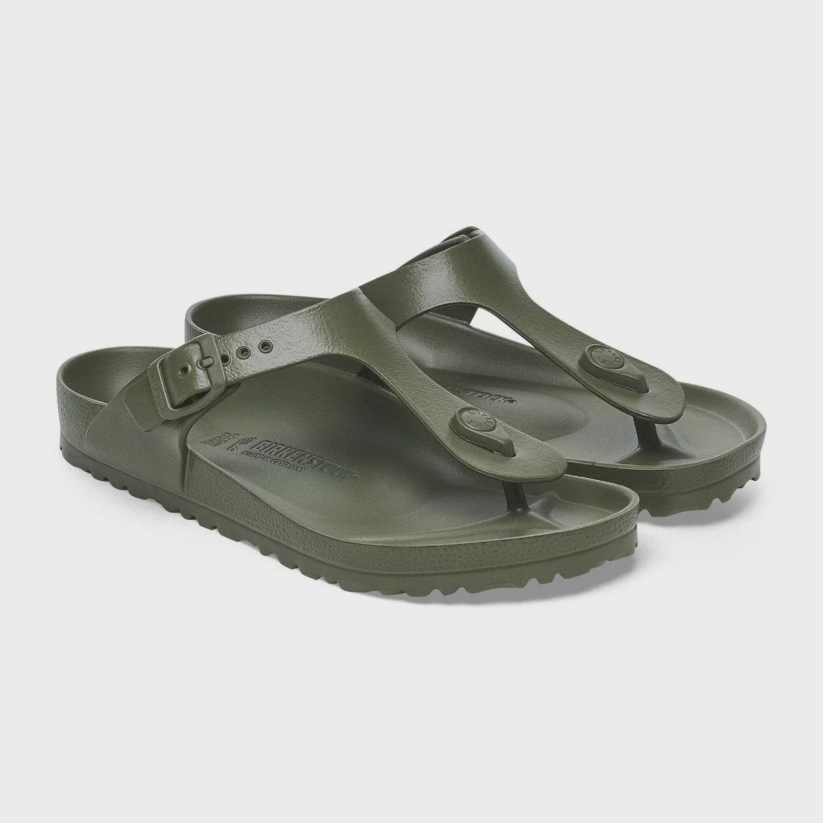 The Gizeh, a classic in the extensive BIRKENSTOCK product range, has been given a new and modern twist. Modeled on the cork sandal, it is made from ultra light and highly flexible EVA. This thong sandal is made from a single piece of material and produced completely in Germany. The high-quality, odor-neutral EVA has been tested for harmful substances and combines numerous positive attributes. It is ultra lightweight, highly elasticated, shock-absorbent, skin-friendly and offers the comfort you have come to expect from BIRKENSTOCK.