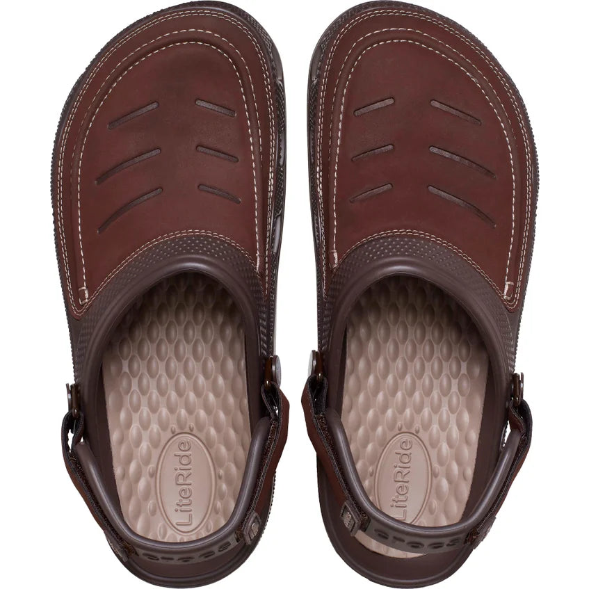 Faux leather uppers and adjustable heel straps add a dose of ruggedness to the Men’s Classic Yukon Vista II Clogs. With a hook-and-loop closure system that also pivots forward, you’re free to choose between a hands-free slide or secured fit. Croslite™ foam outsoles and footbeds can handle the outdoor elements while providing true comfort around the campfire, on the trail, or back home.