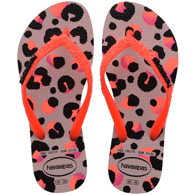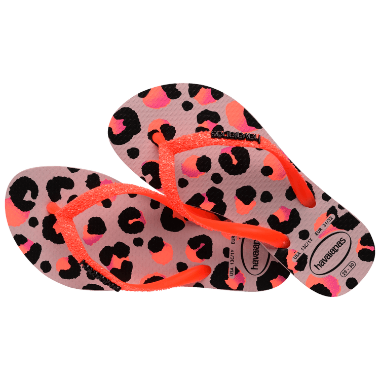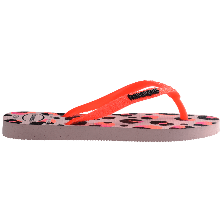 Make way for your little trendsetters to shine with Havaianas Peony Rose Kids Slim Glitter II flip flops! Featuring a vibrant animal print and straps with dazzling holographic glitter, these Havaianas kids flip flops are a surefire hit with fashion-forward youngsters. Step into style and comfort with these dazzling flip flops that promise to add a touch of sparkle to every step. Elevate your child's footwear game with Havaianas Kids Slim Glitter II flip flops, perfect for making a statement on any occasion!