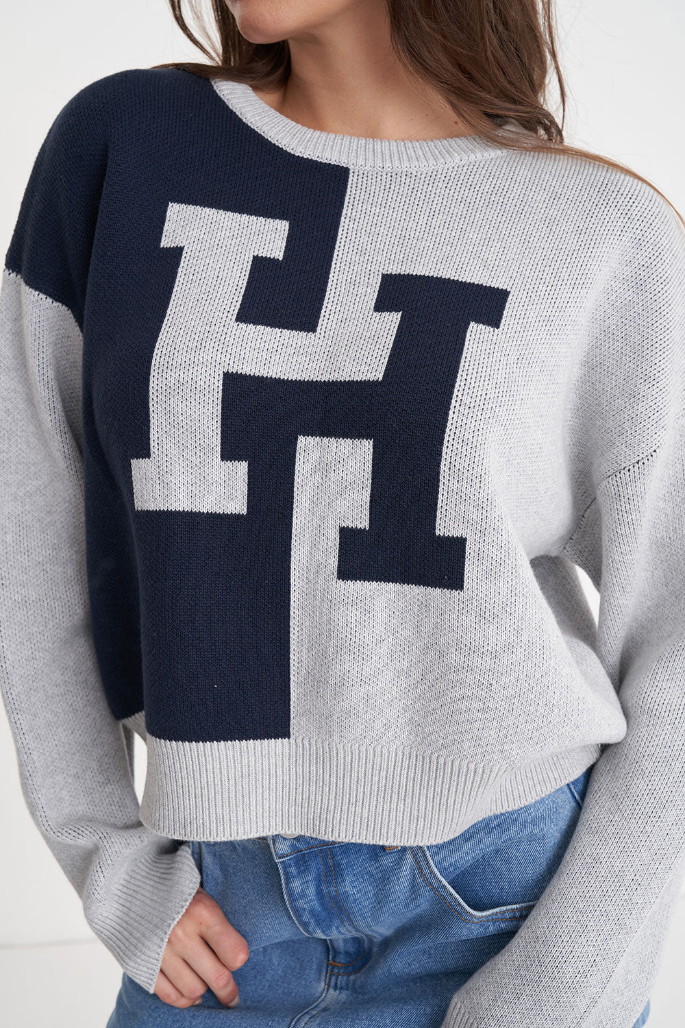100% Cotton / Fully fashioned knit / Classic fit / Drop shoulder / Crew neck / Huffer intarsia branding