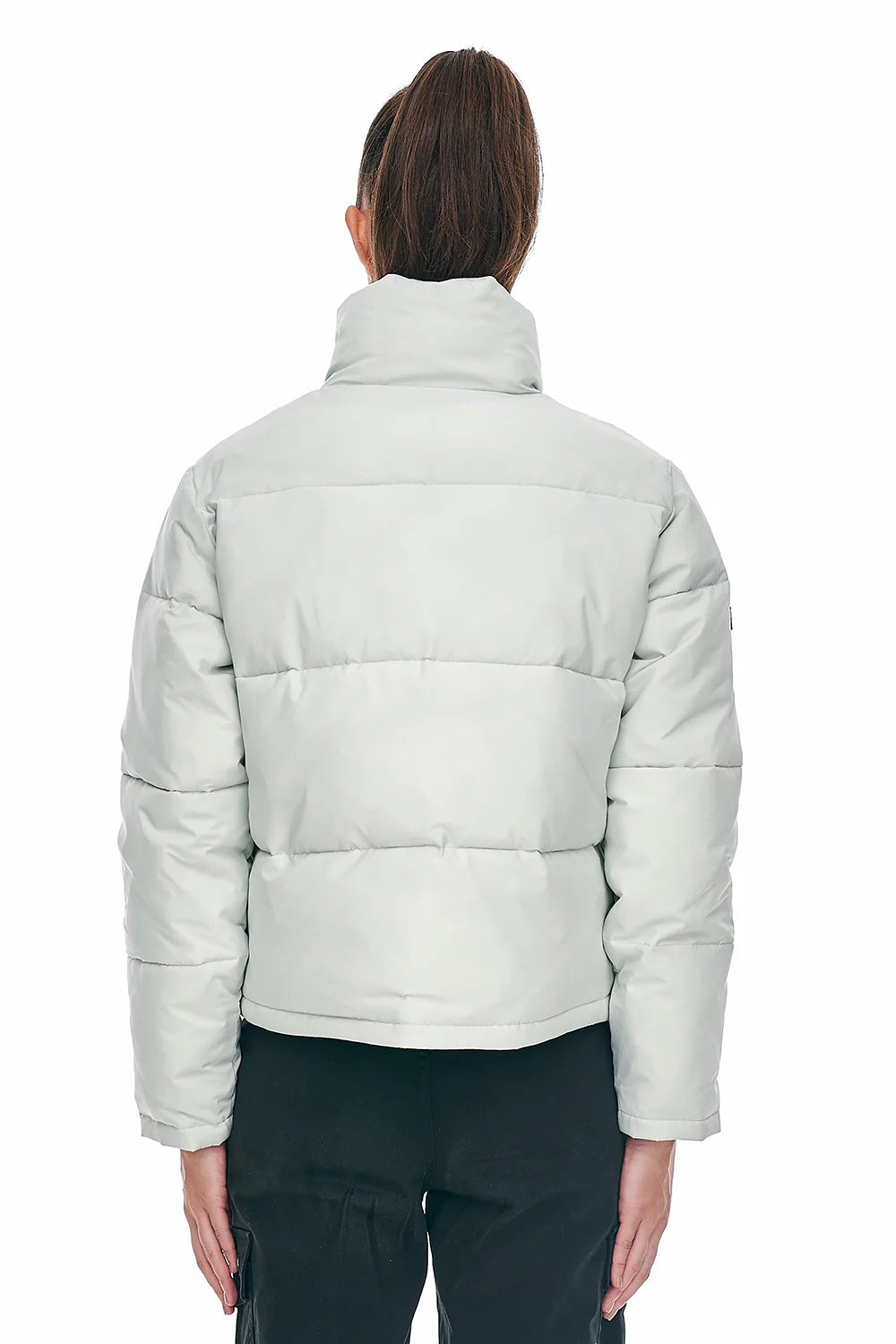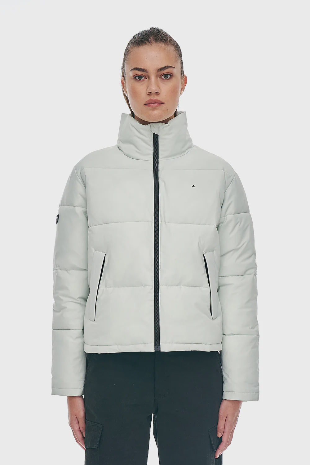 Delivers highly functional warmth with 100% REPREVE recycled polyester fill. REPREVE is developed from bottles collected from the environment and has recycled over 33 billion bottles to date. Light and cropped leading with aesthetic. 100% polyester outer.