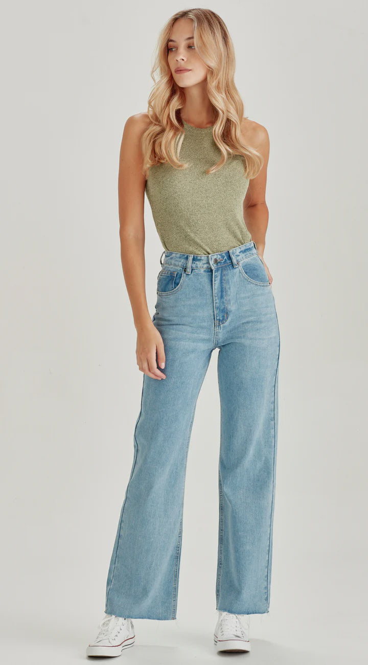 A classic 90's straight leg jean that fits slimmer to the waist & body with a relaxed leg and wider raw hem that can be cut to length. Check our cut to length video below.