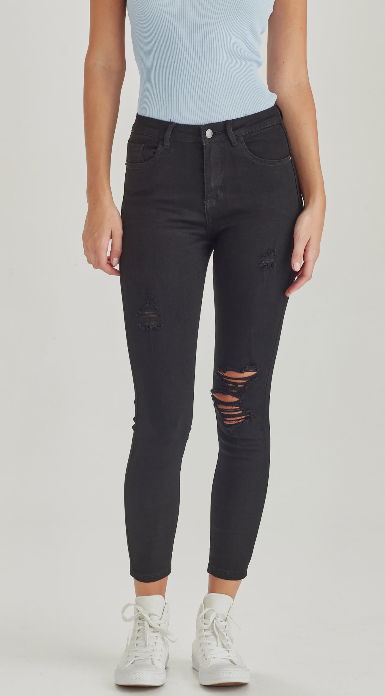 Fitted yet comfortable. Fixed waist band with belt loops, 70.5% cotton, 27.5% polyester, 2% spandex, zip fly, classic 5 pocket design. Rips and holes will naturally continue to grow.