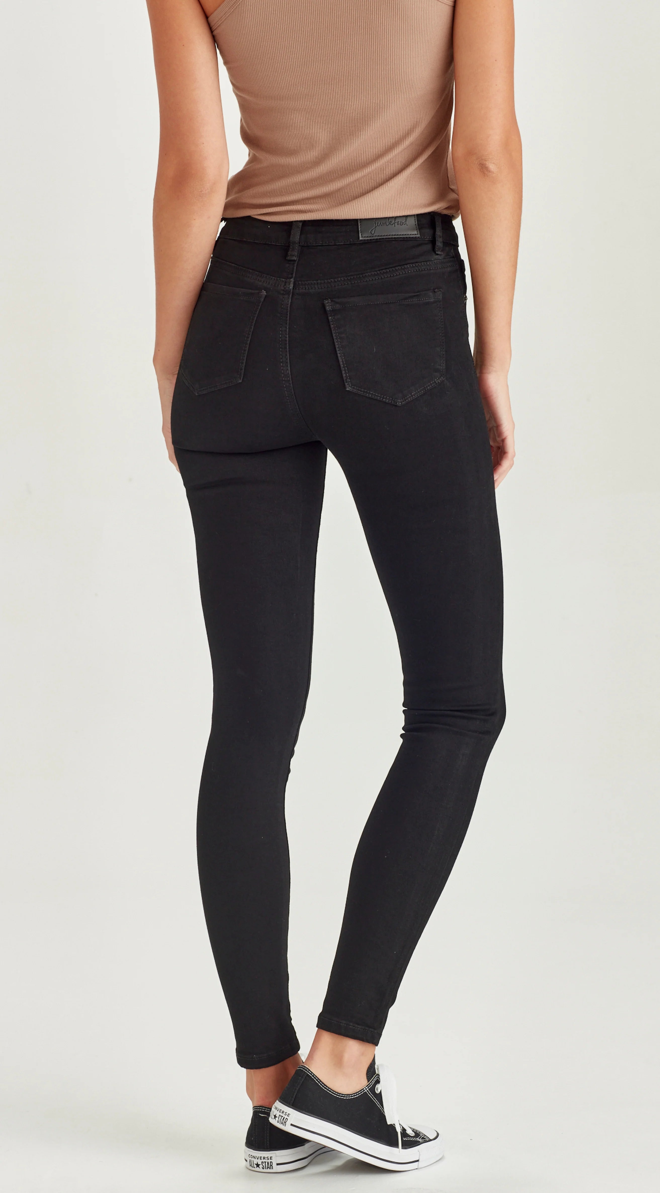 Mid/high waist stretch denim skinny jean for taller women.