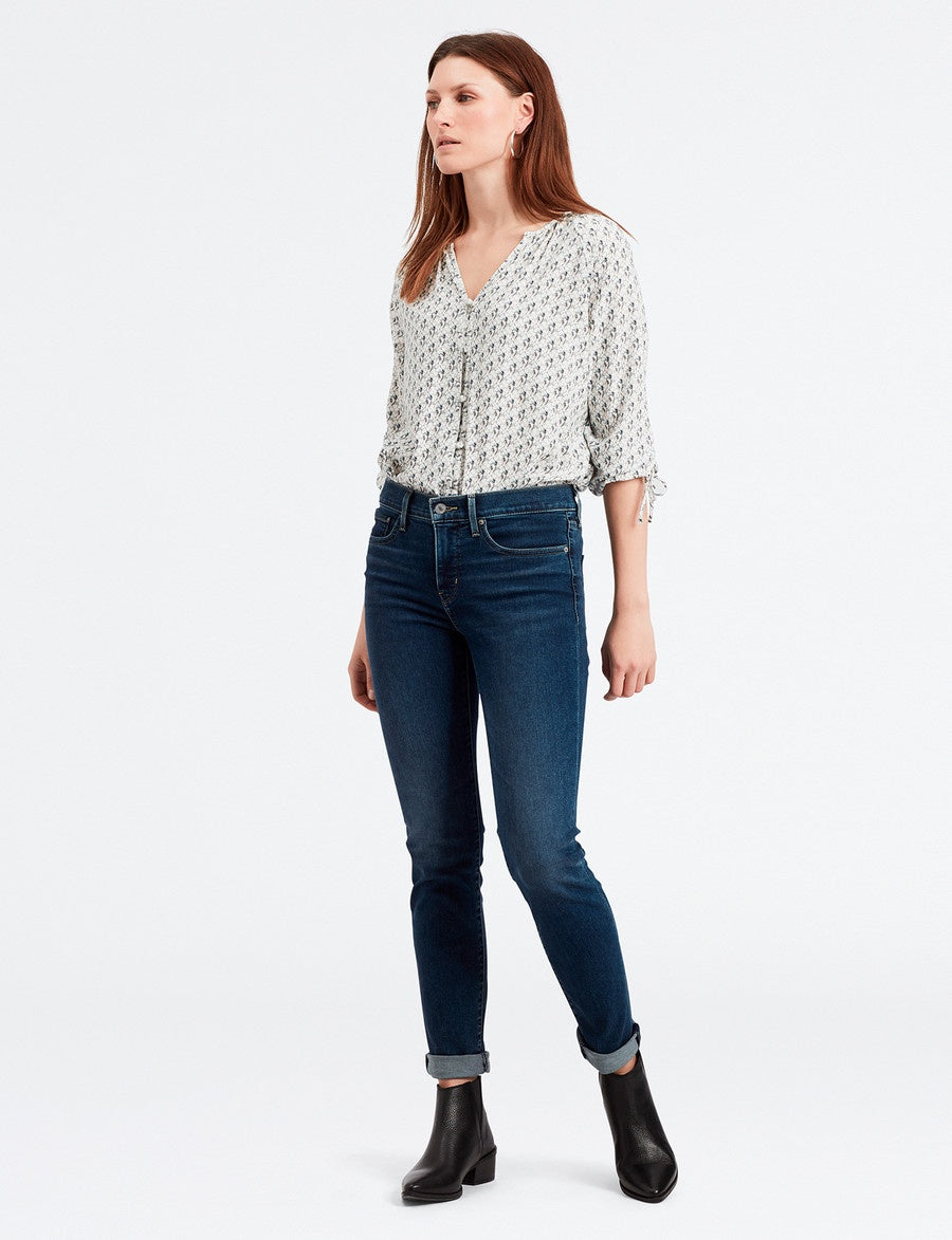 A flattering mid-rise jean with a slim leg designed to contour your curves, lengthen legs and celebrate your form. Features an innovative tummy-slimming panel and added stretch and maximum recovery to ensure you look and feel your best all day long. Levi's® Sculpt with Hypersoft is super-soft for enhanced comfort with supportive stretch. 13.2 OZ Denim.