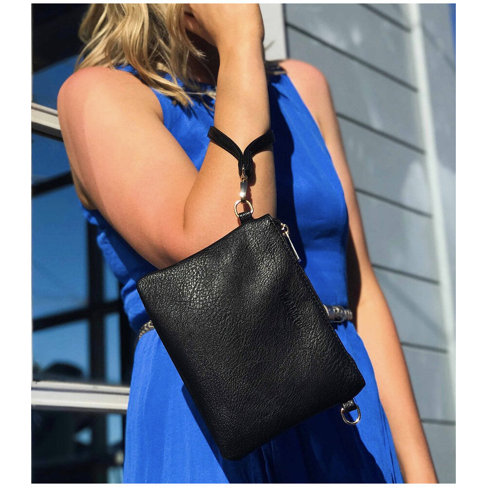 The tote widens open to reveal a roomy inner with an extra zipped pocket as well as the 20cm x 17cm additional clutch.