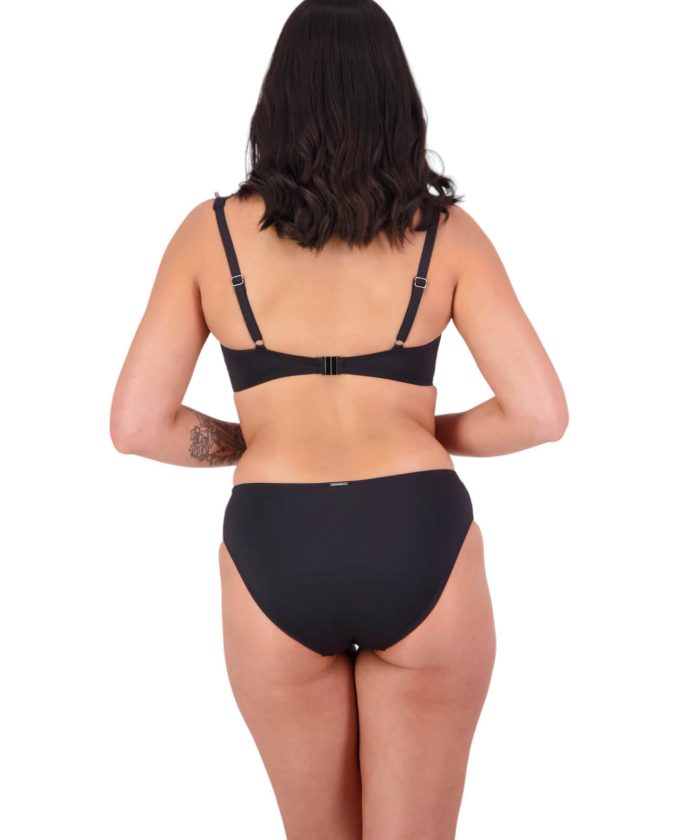 A classic best selling mid-rise pant, sitting just above the hips. The power mesh front panel assures a slimmed down silhouette. Moderate sides and leg height with moderate back coverage.