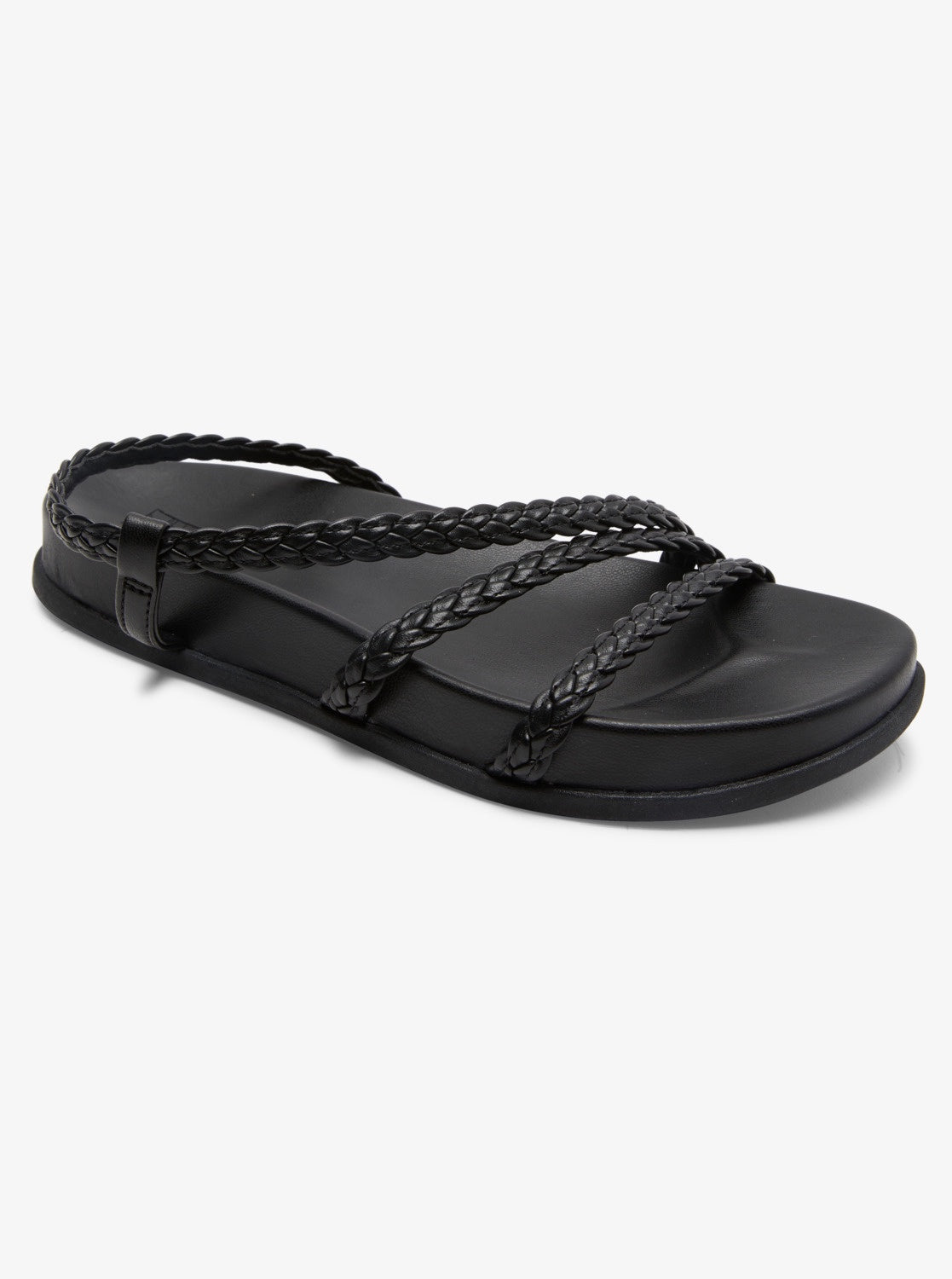Upper: Slip-on sandal with dainty braided synthetic leather straps and medial goring for adaptive fit