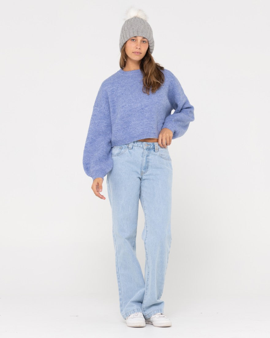 Oversized Cropped Length Fashion Knit With Crew Neck Long Sleeves And Chunky Rib Details. Material: 46% Acrylic 20% Nylon 20%poly 6% Alpaca 6% Wool 2% Spandex