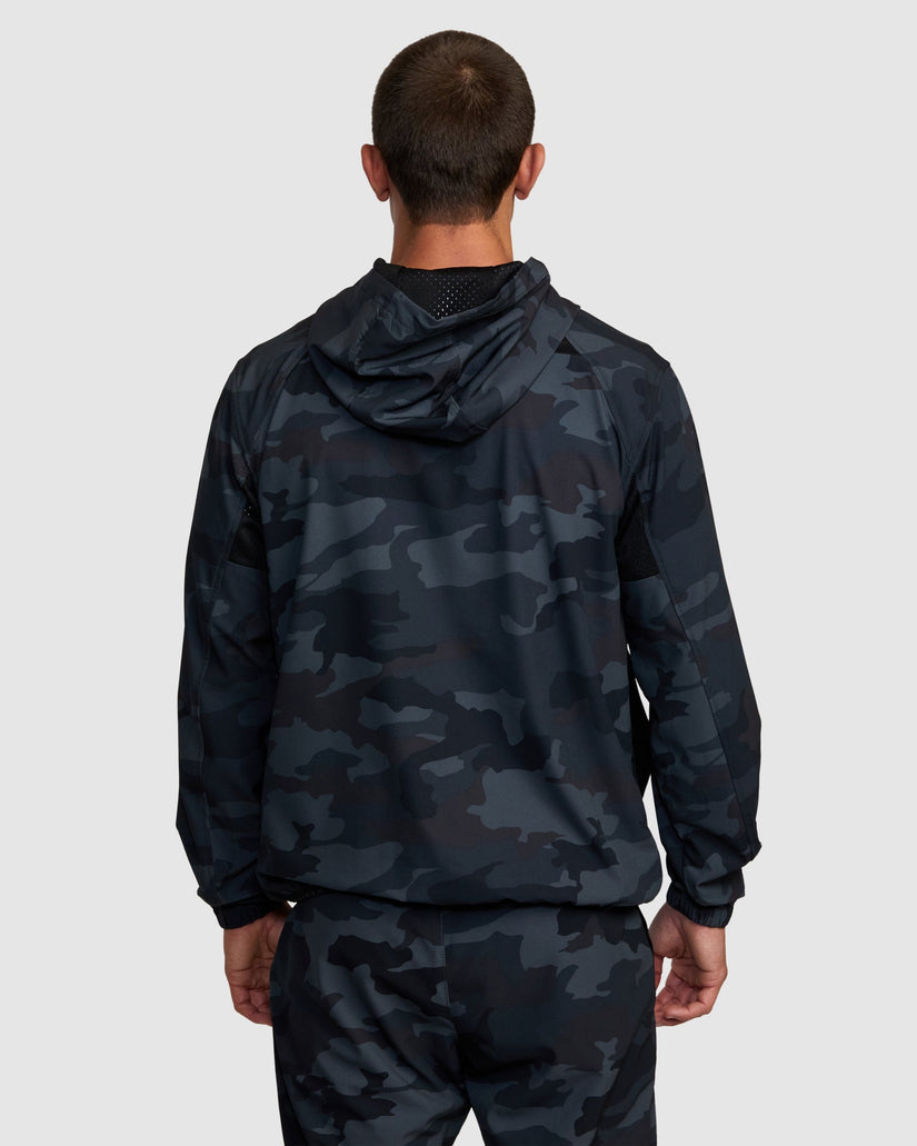 The RVCA yogger zip-up hooded jacket II offers ultimate protection and style for days. Made from sustainable 4-way stretch, this men's hooded jacket features a front zip closure, elastic hem and cuffs, adjustable toggles at the hood and pockets throughout for your needs. topped with VA branding.