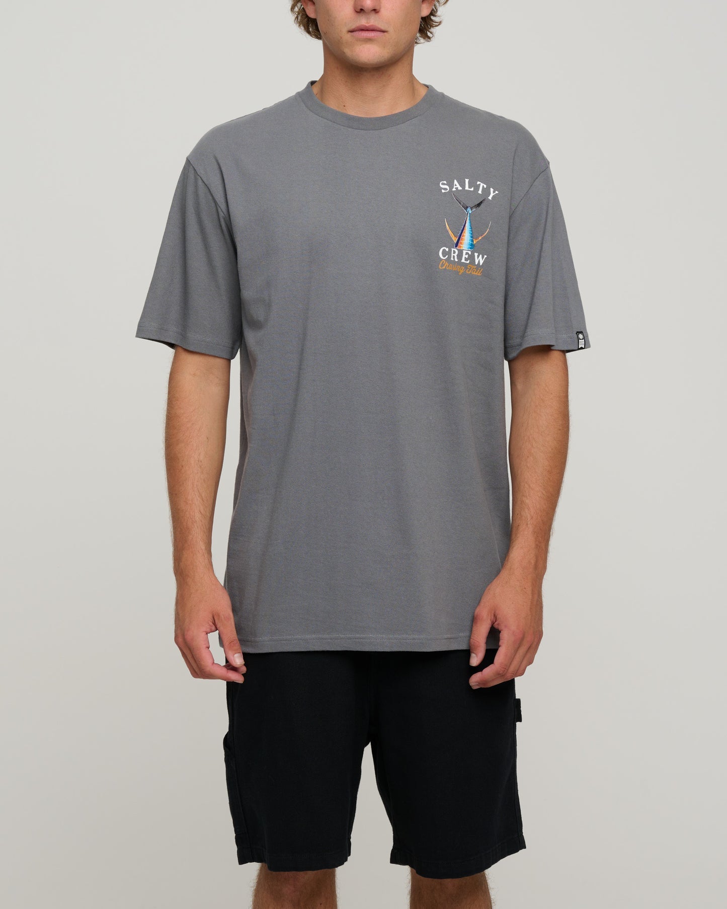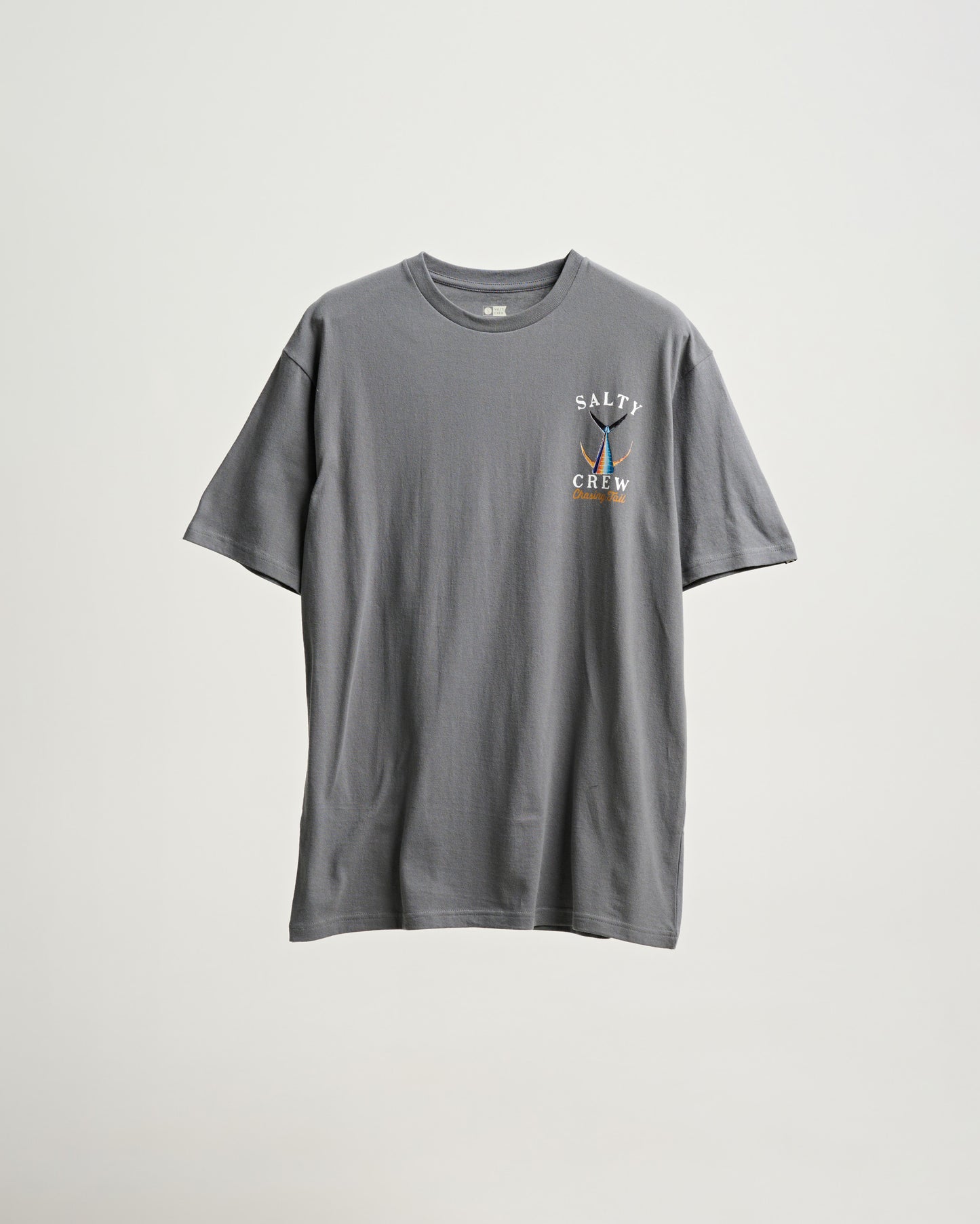 The Tailed Standard SS Tee in Mackeral is crafted from our signature textured cotton jersey, with a 180gsm weight. It features a Salty Crew clamp label at the sleeve hem and showcases screen-printed designs on both the front and back.