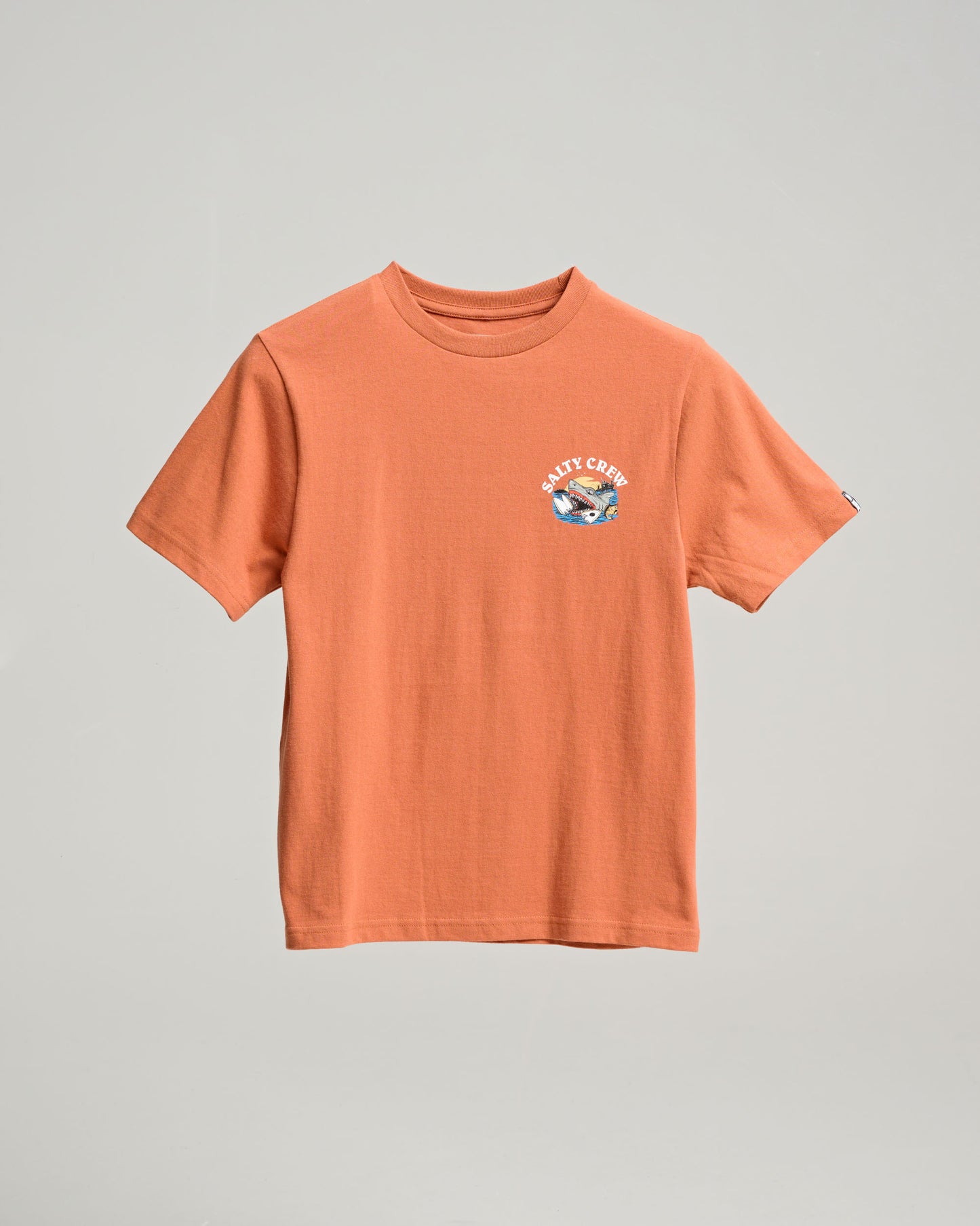 Terror Shark Boys SS Tee in Rust is made from our signature textured cotton jersey, 180gsm in weight. Finished with Salty Crew clamp label at sleeve hem. Screen printed front and back prints.