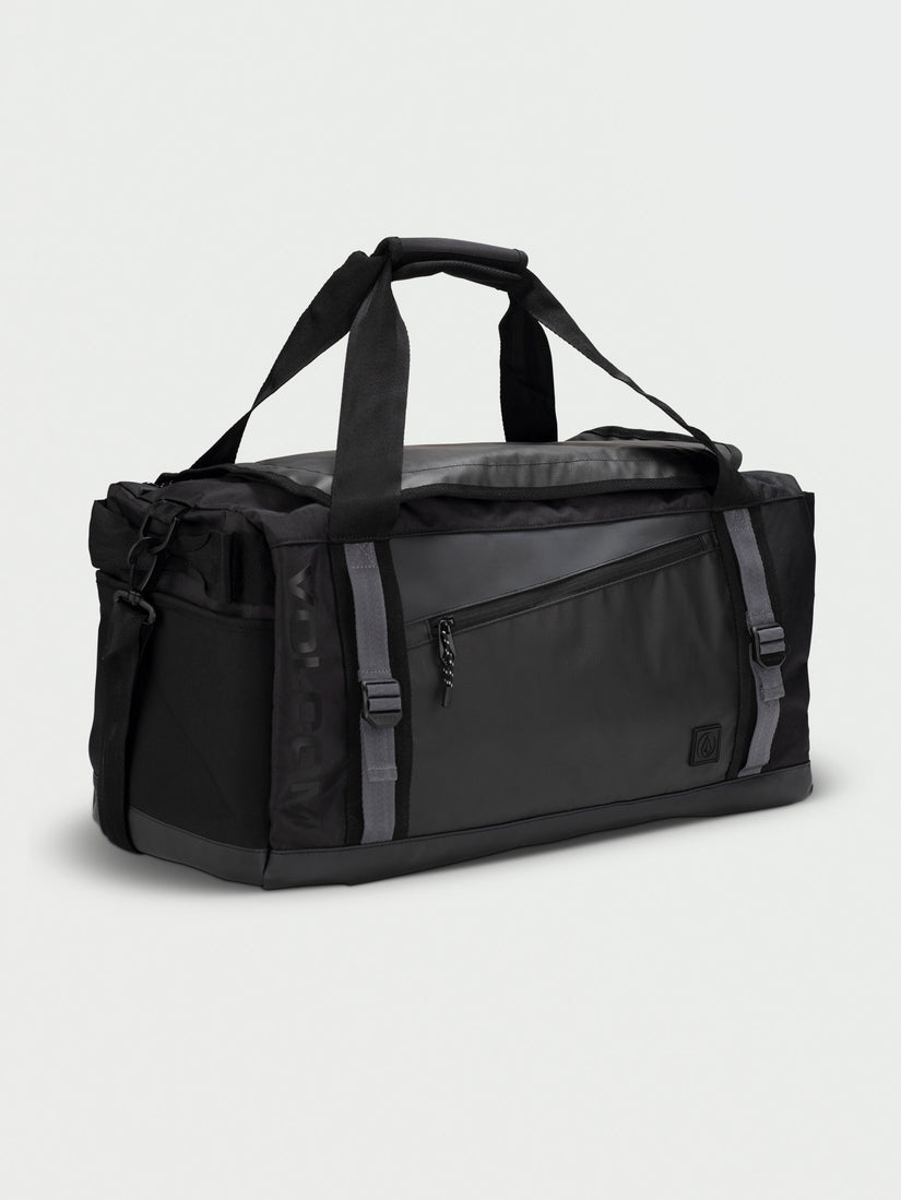This roomy polyester duffel packs convenience, adjustability, and style. Cleverly designed with 3 compartments, webbing cinch straps, and a key clip. Durable coated panels. Removable, adjustable shoulder strap. Wordmark branding.
