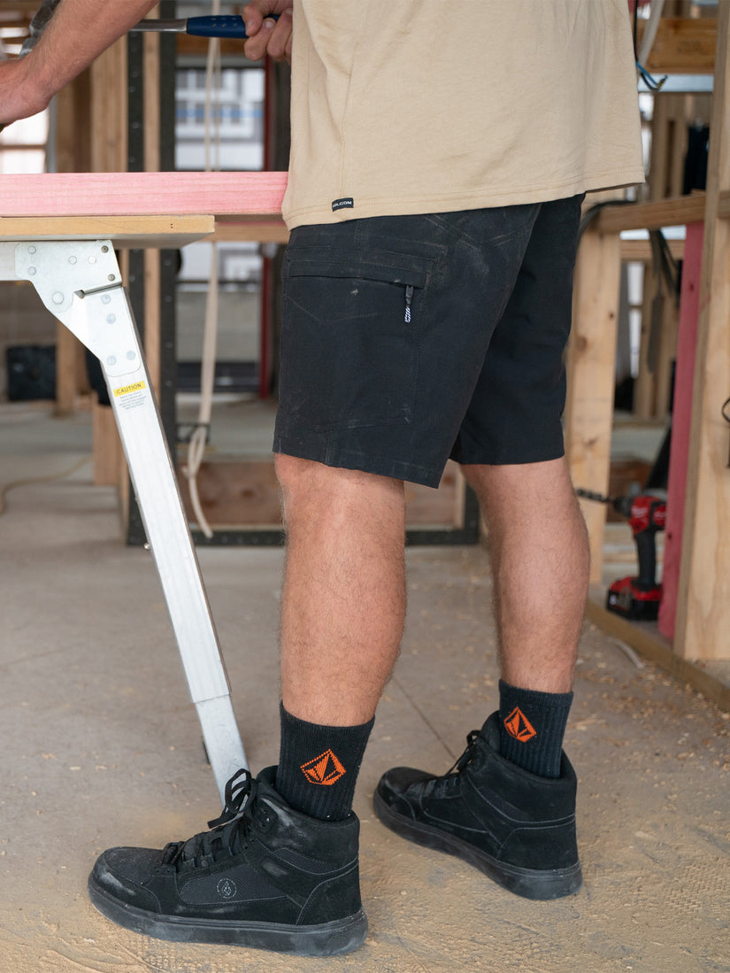The Slab Hybrid Short 20” is our bestselling lightweight, breathable Workwear Short! Featuring 4-way stretch and Water-Repellent treatment, offering an exceptional mobility, durability and quick dry balance. The Slab Hybrid Short 20” features a regular fit with a mid leg-length of 20” outseam. The triple needle stitching offers a super strong seam finish paired with all the utility pockets one needs. A Durable, Reliable Workwear Short. The Volcom Workwear Slab Hybrid Short 20” is tech loaded, perfect for Work & Surf; All day, Every day. Try Quality Made Durable Goods!