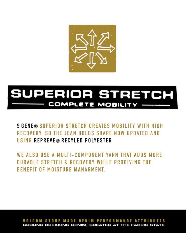 Quality made, fit for comfort, truly genuine for life, the Solver modern fit denim jeans are built to last. Saving approximately 29.8 liters of water per pair when compared to conventional wash methods, this Water Aware of denim forgoes softner, combines desizing and enzyme washes and replaces the bleach with an Ozone treatment to achieve its water savings and spectacular medium dirty blue color.